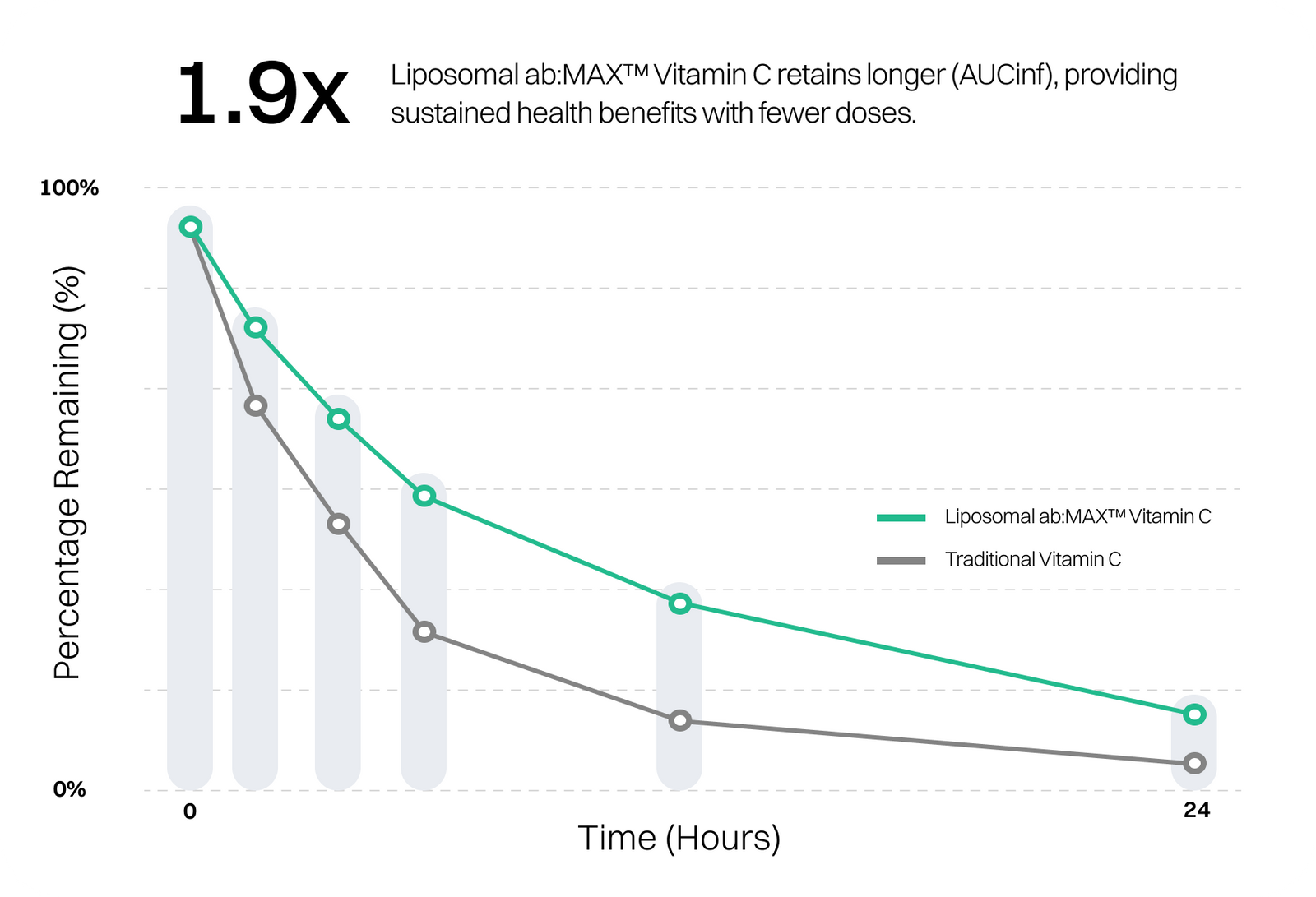 Longer retention as Liposomal Vitamin C stays in your system
