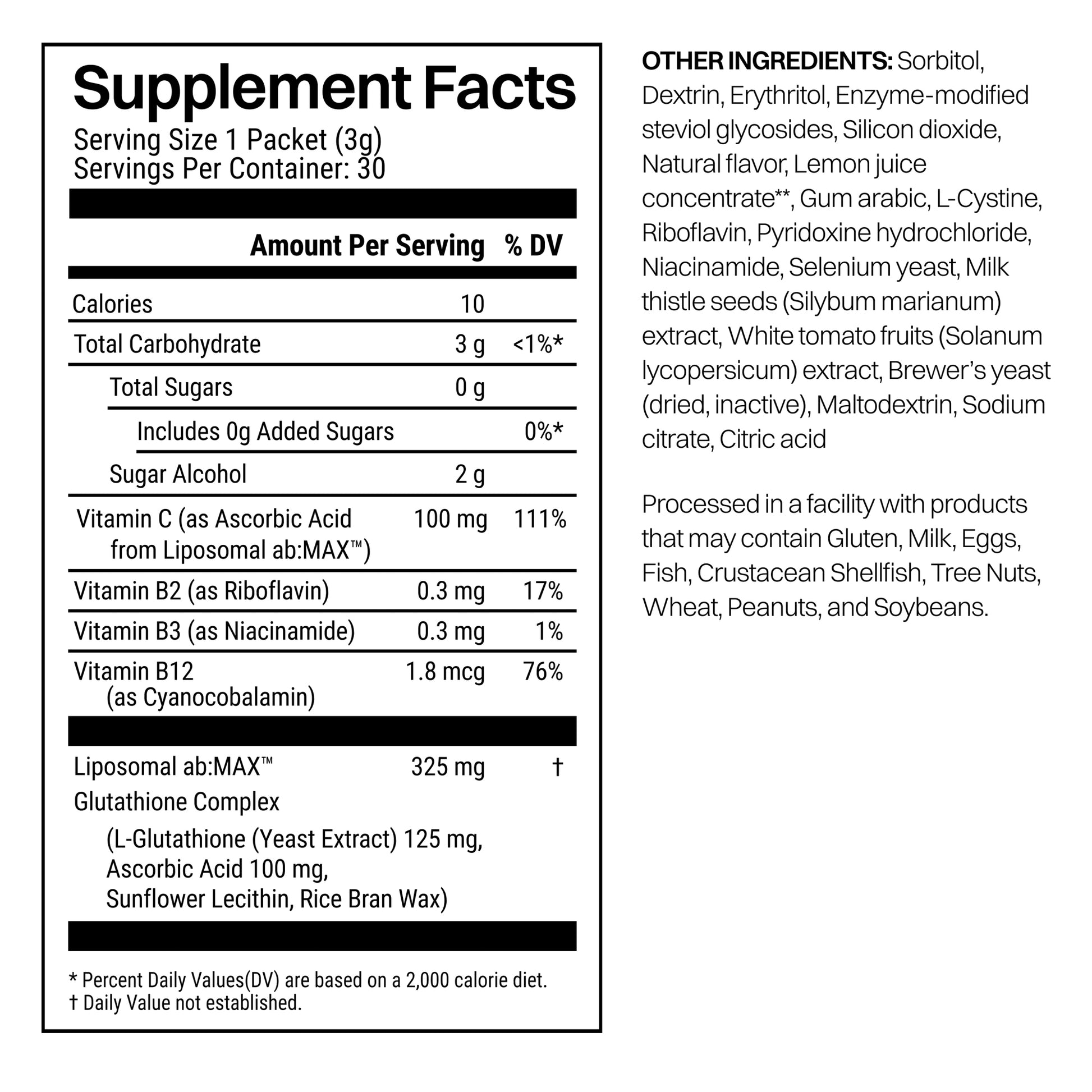 - Skin-Deep Defense: Liposomal Glutathione and Vitamin C work together to help reduce oxidative stress, brighten dull skin, and even tone from within.