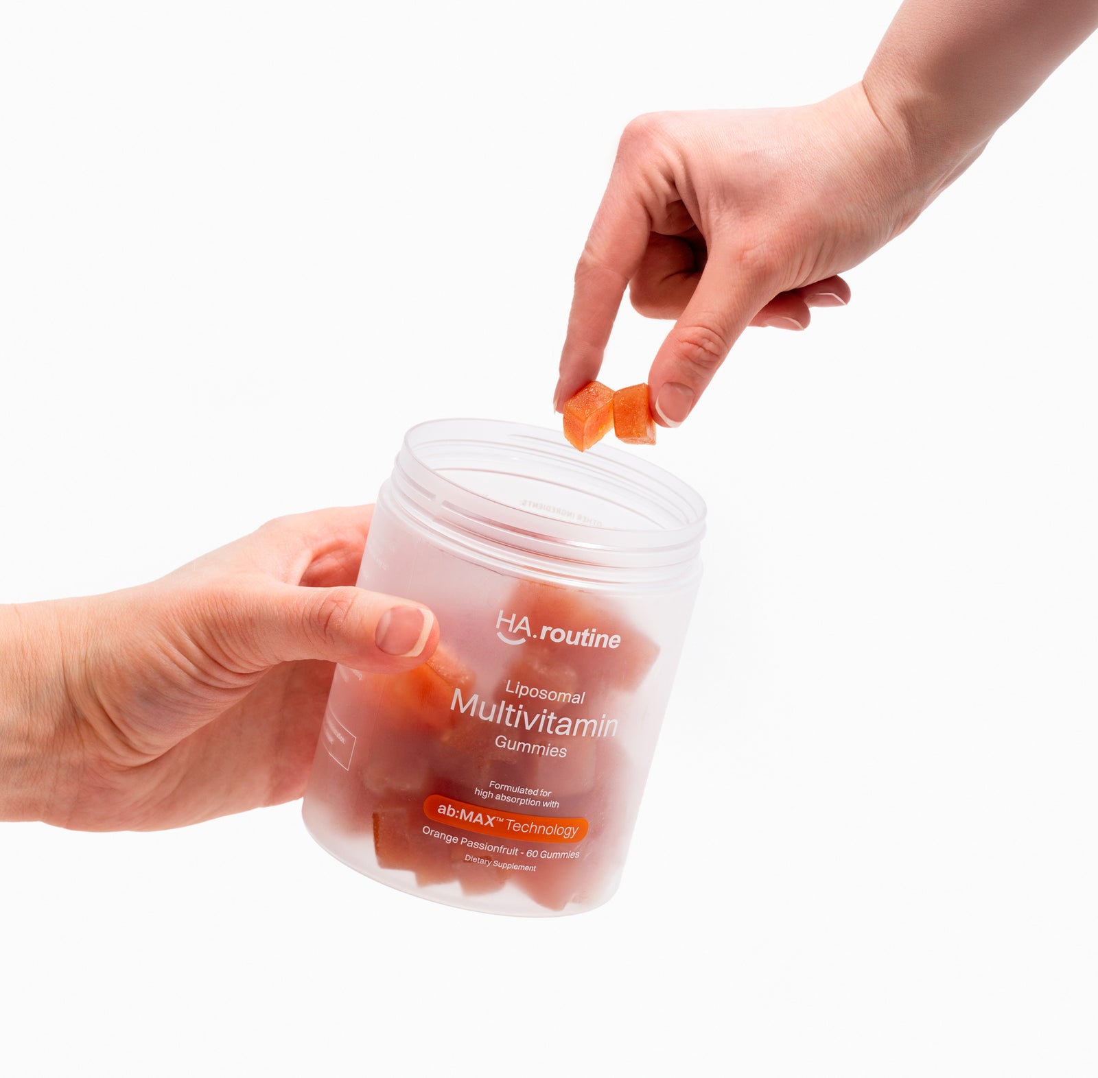 Make daily wellness easy (and fun). Bursting with a natural orange passion fruit flavor, these gummies are packed with 350 mcg of vitamin A, 80 mg vitamin C, 15 mcg of vitamin D, 8 mg of vitamin E, enhanced with liposomal ab:MAX technology, plus additional essential vitamins for a multi-faceted approach to total wellness.