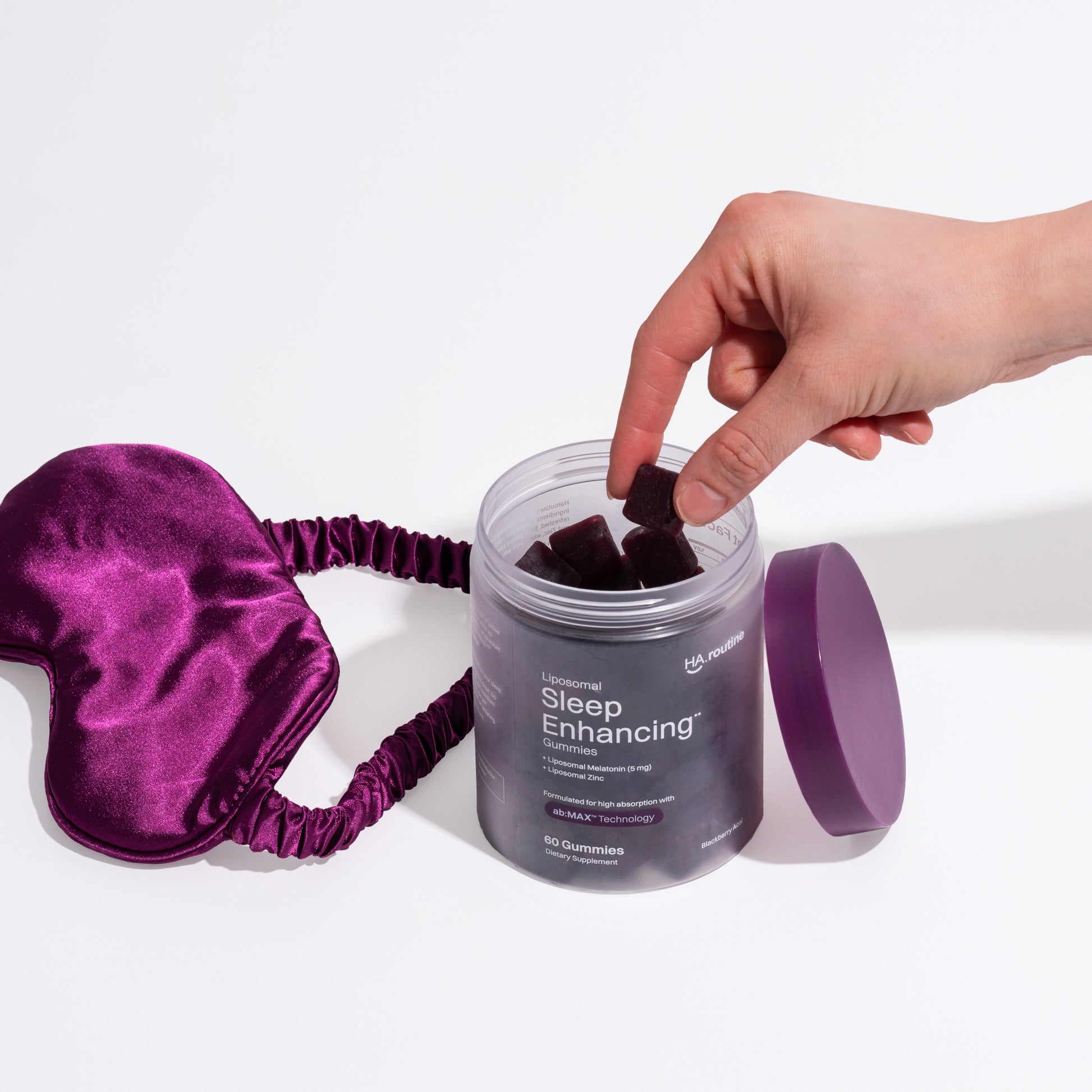 Unlock a new level of beauty sleep thanks to our blackberry acai-flavored Liposomal Sleep Enhancing Gummies. With a soothing blend of 2.5 mg of liposomal melatonin, 160 mg of calming L-theanine, 30 mg of muscle-relaxing magnesium, and 4 mg of stress-reducing zinc, these supplements for sleep are your new go-to for winding down and catching some seriously restful ZZZs.